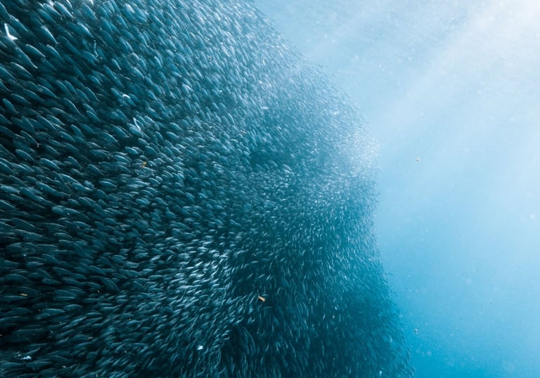 poissons sauvages préservés de la pêche minotière (pour nourrir les saumons)